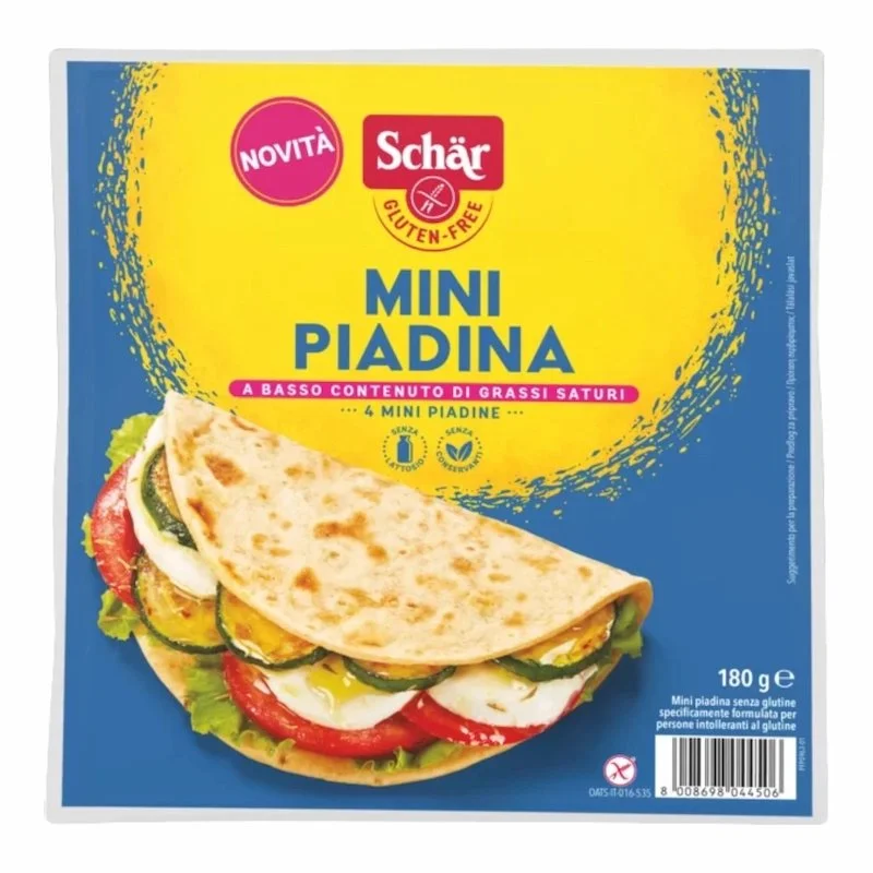 Voyagez en Italie tout en respectant votre régime alimentaire avec les Schär Mini Piadina. Ces pains plats typiquement italiens sont spécialement formulés pour les personnes intolérantes au gluten ou souffrant de la maladie cœliaque. Alliant souplesse et légèreté, ces mini piadinas sont la base parfaite pour des repas créatifs, rapides et conviviaux.